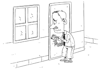 第二天,管理员上班后,想打开办公室的全部门窗,一面搞搞卫生,一面熟悉地形与周围环境,却不知道哪把钥匙开哪扇房门。没有办法,他只好带上10把钥匙,一把又一把地试着开门。