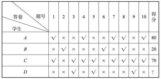 某小学在一次摸底考试中出了10道是非题,每题10分。答卷办法规定为:如果学生认为题目中的结论或看法是对的,就答√,否则,就答×。