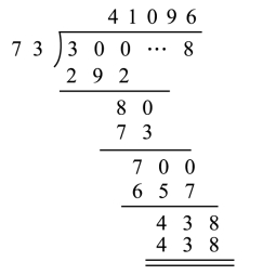 这就是说,如果73能够整除一个以3打头,以8结尾,中间夹着一系列零的数,那么这个商数就是符合条件的x。