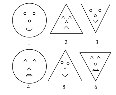 在计算机屏幕上,相继出现了类似无锡“大阿福”式样(一种玩具,古时就很有名气)的6副面孔。我们用阿拉伯数字表示它们出现的先后顺序。