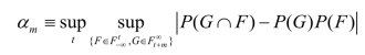 系数αm测度了含在至少被m个时期分割的变量中的事件之间的相依程度,如果对于所有的λ﹤-a,αm=o(mλ),则αm被称为具有大小-a。