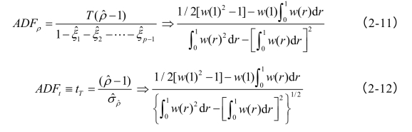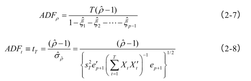 Dickey与Fuller(1979)提出了基于随机游走的单位根检验:DF检验,随后,为修正自相关问题,Dickey与Fuller(1979,1981)在原方程中加入Δyt的若干滞后项以消减自相关性问题,提出了扩展的ADF检验。