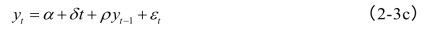 检验是否存在单位根则是检验假设:H0:ρ=1;H1:ρ﹤1。