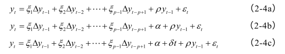 ADF检验的三个检验方程则为: