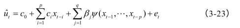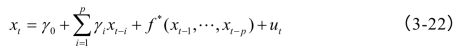 按这一思路,结合本书第7章7.3.5对加强型神经网络的讨论,检验可表述为:假设时间序列xt与其滞后项存在如下关系:
