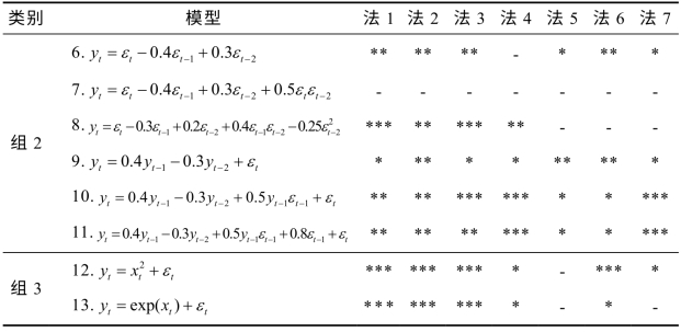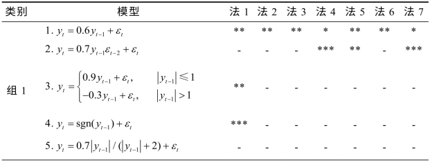 表3-1 各检验方法对不同模型的非线性存在性检验效果