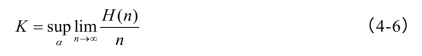 当不能得到轨线的精确初始值时,随着轨线的演化,解的发散意味着信息的丢失。在混沌系统中,Kolmogorov(1958)引进测度熵的概念,简记为K熵,用以度量系统的混沌程度。K熵反映信息损失的平均速率,代表了系统信息产生的频率。K熵定义如下: