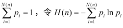 定义4-5 对于动力学方程,其相空间具有有限体积(测度),给定相空间的一个有限分割α,每隔单位时间取样,即得一个符号动力系统。令N(n)是字长为n的允许字数目,对于每一个字长为n的允许字,存在着一个概率p,它正比于该允许字所具有的相体积。设pi,i=1,2,…,N(n),为第i个字长为n的允许字出现的概率,满足