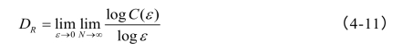 关联维数即奇异吸引子维数,用以定量描述奇异吸引子自相似的分形结构特征。对于奇异吸引子的维数的测度,Halsty(1986)提出了分数维测度(Fractal Measures)的概念,主要有盒维数(Hausdoff维数)、信息维数和关联维数。