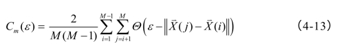 对于某一给定的临界距离ε,称相空间Rm中奇异吸引子上的两点间距离小于ε的概率为关联函数[1],记作: