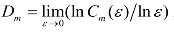 如果时间序列{xt,t=1,2,…,N}有奇异吸引子存在,则Dm随着m的增加而增加,当Dm增加到一定程度时,Dm趋于饱和值D。对于混沌系统,D一般为分数。其几何意义也即画出lnCm(ε)与lnε图,求出其渐近稳定斜率。