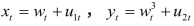(4)模型4:DGP为:,这里wt为一随机游走序列,满足初始值w0=0,u1t与u2t为两独立的高斯白噪声序列。