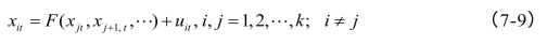 假设非线性均衡方程存在,其一般表述形式为G(x1t,x2t,…,xkt,Θ),Θ为非线函数G(∙)的参数集,若函数为显函数,即可以被表示为: