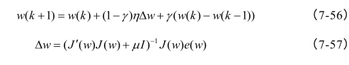 这里η为学习率,γ为动量因子,μ﹥0为比例系数,In×n为单位矩阵,J(w)为Jokobian矩阵,这里