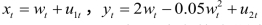 (3)模型3,二次多项式模型:DGP为:,这里wt为一随机游走序列,满足初始值为w0=0,u1t与u2t为两独立的高斯白噪声序列。