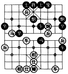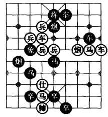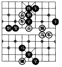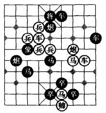 第四步:在图3基础上,笔者又考虑在黑5·7 位添植一枚卒,如图4所示。造成红炮必须在中路弃炮,由红车、兵完成最后的杰作,这样产着率还可以增加4 着。着法如下: