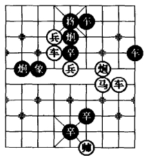 第二步:按照图1的着法过程,其中主要是红三路炮利用车照将调整炮位置,使马可以发挥威力的作用技巧思路,设计出图2 排局。着法如下: