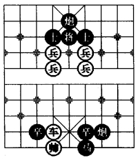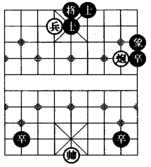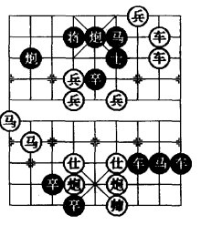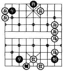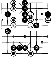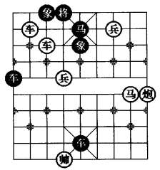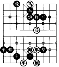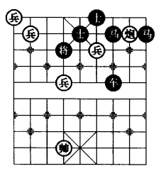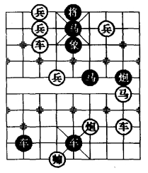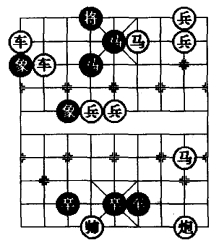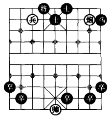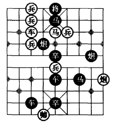此局有一定的趣味性,右边二路犹如一条鞭子。首着前兵平八后,就将黑方逼到悬崖边上,如何解围?决定胜、负、和。黑卒进底叫将是必然技巧所在,炮进、退伏杀,扫除红二路诸子,后右路佯杀而正面拴链红马,然后红妙用三兵成和。