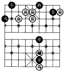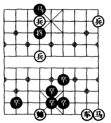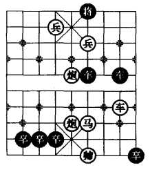 ①如后兵平五,则炮6 退8,兵六平五,将5 平4,兵九平八(如前兵平四,卒4 进1,帅六平五,卒4 平5,帅五平四,卒9 平8,兵九平八,卒8平7,兵八平七,卒7平6,黑胜),卒4 进1,帅六平五,卒4 进1,帅五平四,炮6 平2,后兵平六,炮2 进6,黑胜。