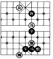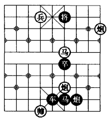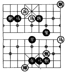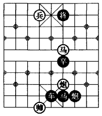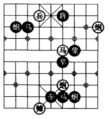 第四步:根据图3局势,黑方在7·5 位添植一象,添象目的主要是想给红增加着法上一些难度系数;在黑2·3 位和3·3位又分别添植一枚炮和一枚马,如图4所示,这样使着法有一个好的收尾。