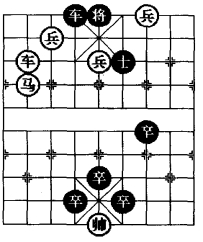 ②如帅五平四,则卒7 平6,兵五平四,卒6 进1,兵七平六,卒6进1,兵六平五,卒6 进1,黑胜。