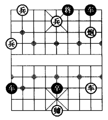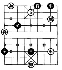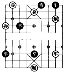 ②如车3 退1,则帅五进一,车3 进1,帅五退一,车3 退1,帅五进一,车3 退3(一将一吃炮,黑必须变着),炮一平九,车3 平5,帅五平六,车5 平1(如车5 退4,炮九进九,将6 进1,炮九退一,红胜定),后兵平七,车1 进4,兵七平六,车1 平3,帅六退一,车3 退1,帅六退一,车3 退1,帅六平五,车3 退2,相三退五,车3 进2,帅五进一,车3 进1,帅五退一,车3 退1,帅五进一,车3 平4(一将一吃相,黑必须变着),兵八平七,车4 退6,兵五平六,将6 进1,相五进三,将6 进1,兵六平五,红胜。