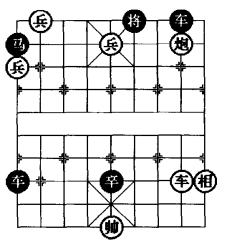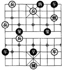 ②如兵七平六,则象7 退5,帅五平六,车1 进2,炮五平六,车1退2,炮六平五,车1 进8,帅六退一(如炮五进一,车1 平4,炮五平六,车4 平2,炮六平五(如炮六平九,车2 退9,黑胜定),车2 退6,兵六进一,车2 平4,帅六平五,车4 退1,黑胜定),车1 平5,兵六进一,车5 平2,兵八平九,车2 退4,兵六进一,象3 退1,与主着法一样,和局。