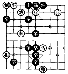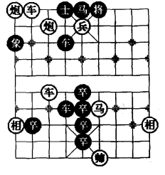 ②如马四退二,则中卒进1,兵五进一,将6 进1,兵五平六,卒6进1,马二退四,前卒平6,帅四平五,前卒进1,帅五平六,卒6 进1,车七进三,将6 进1,车七平四,将6 退1,炮七退九,后卒进1,炮七平四,后卒进1,相一进三,后卒平4,黑胜定。