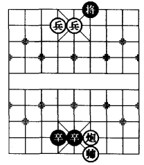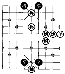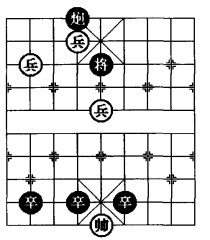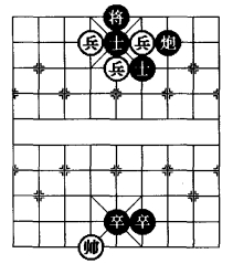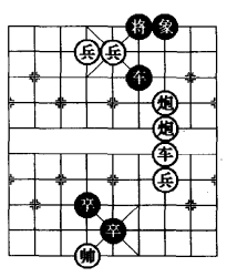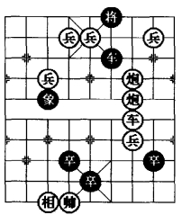 ②如将5 平6,则兵二平三,将6 进1,炮八进七,卒6 平5,帅五平六,后卒平4,炮八平六,卒4 平3,炮六平七,卒3 平4,炮七平六,卒4 平3,炮六平七,卒3 平4(如象3 退1,后兵进一,卒3 进1,炮七退一,红胜),炮七平六,卒4 平3,双方不变,按“古局棋规”可以作和局论。