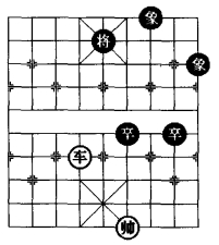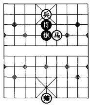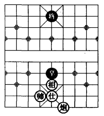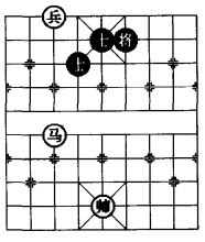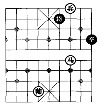 如图形势“马底兵是必胜双士”的,即是用一兵换去一士可以成“单马必胜单士”的形势。现介绍“马底兵例胜双士”棋局如下: