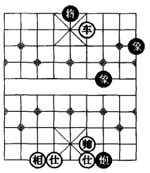 炮、双象位置不佳,很容易遭到失败,因它组不成“炮三象”形式,那必然达不到例和形势,只能失败。今介绍“单车巧胜炮双象”棋局如下:
