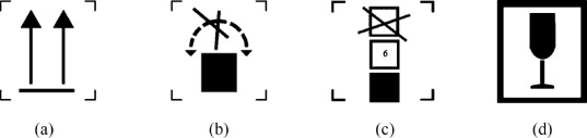 (a)向上;(b)禁止翻滚;(c)堆码极限;(d)小心轻放
