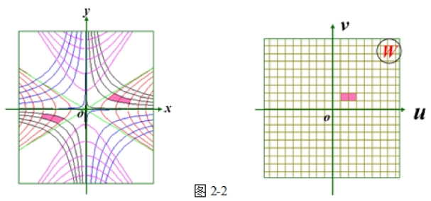 因此,它把z平面上的两族分别以直线y =±x和坐标轴为渐近线的等轴双曲线