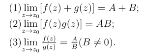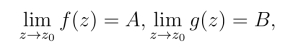 可以导出定理的结论.定理2 设复变函数f(z)与g(z)当z →z0时的极限分别为A 和B,即