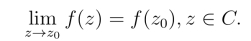还应指出,函数w =f(z)在曲线C上点z0处连续是指: