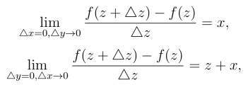 所以(△z →0)的极限不存在,即当z
