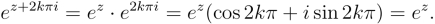 (3) 由加法定理,可推出ez的周期性.对任意整数k,都有