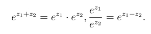 (2) ez满足加法、减法定理,对于任意的z1,z2,有
