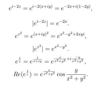 所以其模|ez|=ex,实部Re(ez)=ex cos y.