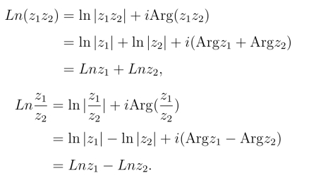另外,实变数对数函数的运算性质对于复变数对数函数仍然成立: