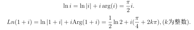 例2 求Ln(-2),Lni,Ln(1+i)及其主值.