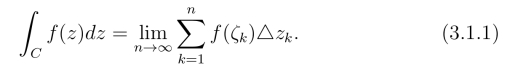 由定义可以看出,当C是x轴上的区间a ≤x ≤b,而f(z)=f(x)时,这个定义就是一元实变函数定积分的定义.