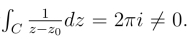被积函数f(z) = 1在复平面内是处处解析的,设C是复平面上从点a到点b的任意有向曲线,则积分积分与路径无关.在上一节例1中,被积函数当n = 0时为它在以z0为中心的圆周C的内部不是处处解析的,因为它在z0 处不是解析的,而此时积分再如上节例3中,被积函数f(z) =在整个复平面内处处不解析,且积分的值与路径有关.由此可见,积分的值与路径无关,或沿封闭曲线的积分值为零的条件,应该与被积函数的解析性有关,下面进行详细讨论.