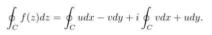 定理1(柯西积分定理) 若函数f(z)在简单闭曲线C上及其内部解析,则一定有