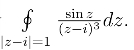 解 函数在圆周|z-i|=1内的z =i处不解析,但sin z在|z-i|≤1上处处解析,因此