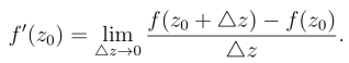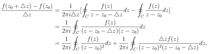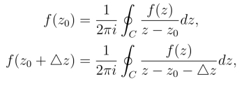 其中C为在函数f(z)的解析区域D内围绕z0 的任何一条正向简单闭曲线,而且它的内部全含于D.