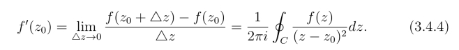 这表明了f(z)在z0的导数可以由把式(3.4.1)的右端在积分号下对z0求导而得.
