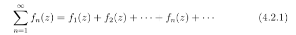 S(z)称为级数的和函数.当fn(z) = cn-1(z - a)n-1或fn(z) =cn-1zn-1 时,就得到函数项级数的特殊情形.