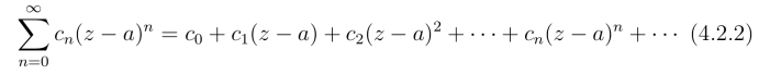 这种级数称为幂级数.若令z-a=ζ,则式(4.2.2)成为即式(4.2.3)的形式.因此只需要讨论式(4.2.3) 的幂级数.