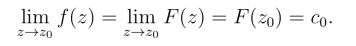 记右端级数的和函数为F(z),则F(z)在z0点是解析的,并且当z z0 时,F(z)=f(z); 当z-z0时,F(z0)=c0,于是